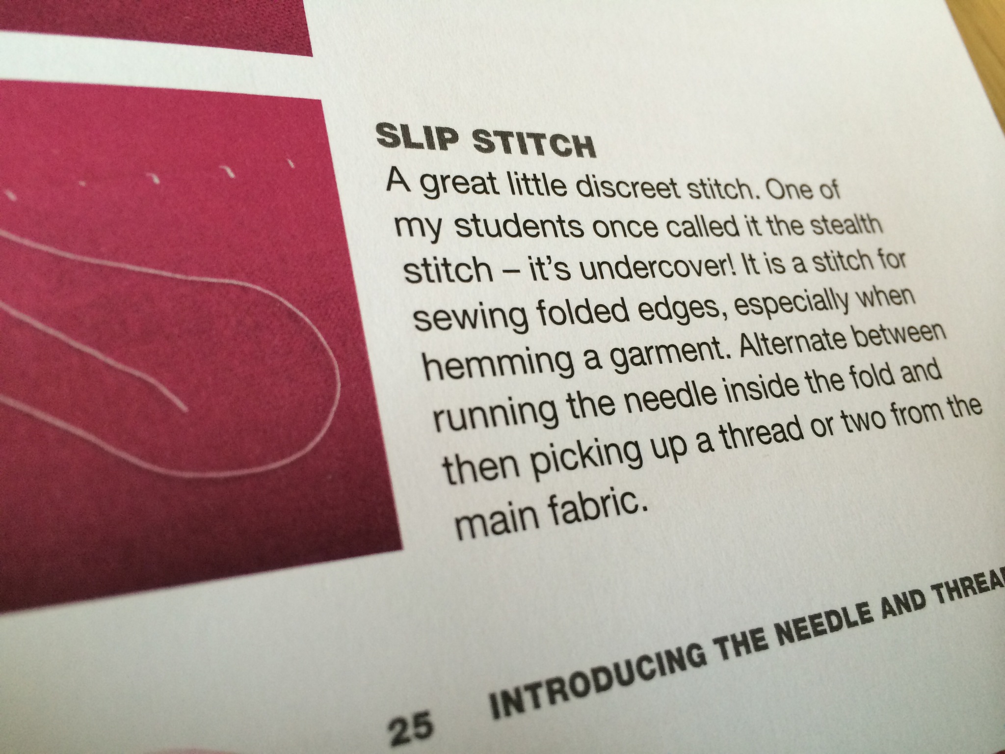 I folded the edges in so they would be roughly the same as the existing ones, then pinned them to hold them in place. I decided to sew from the middle to the edge and hoped this would mean I could push any unwanted ruffles out wards and disguise them easier. This is where someone else would have thought ahead and chosen a better finishing method. My way is quick and easy but means the final bit has to be hand sewn. To date I am wary of buttons, zips, press studs and other fastenings, because I haven’t used them since GCSE Textiles and I’m too impatient. Previously I have oversewn the gap which is functional but doesn’t look great. Today I decided to try the slip stitch.