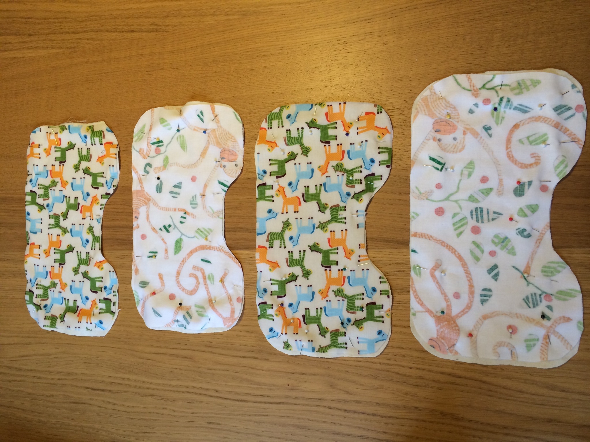 Today I tried the pattern out. As I’m still awaiting a new printer, once again it was necessary to try and trace the pattern from my iPad – not recommended. I then chose a couple of boy friendly fabrics from my stash and marked out the pattern on both them and the flannel. I decided I’d make a few at a time and so them in stages.