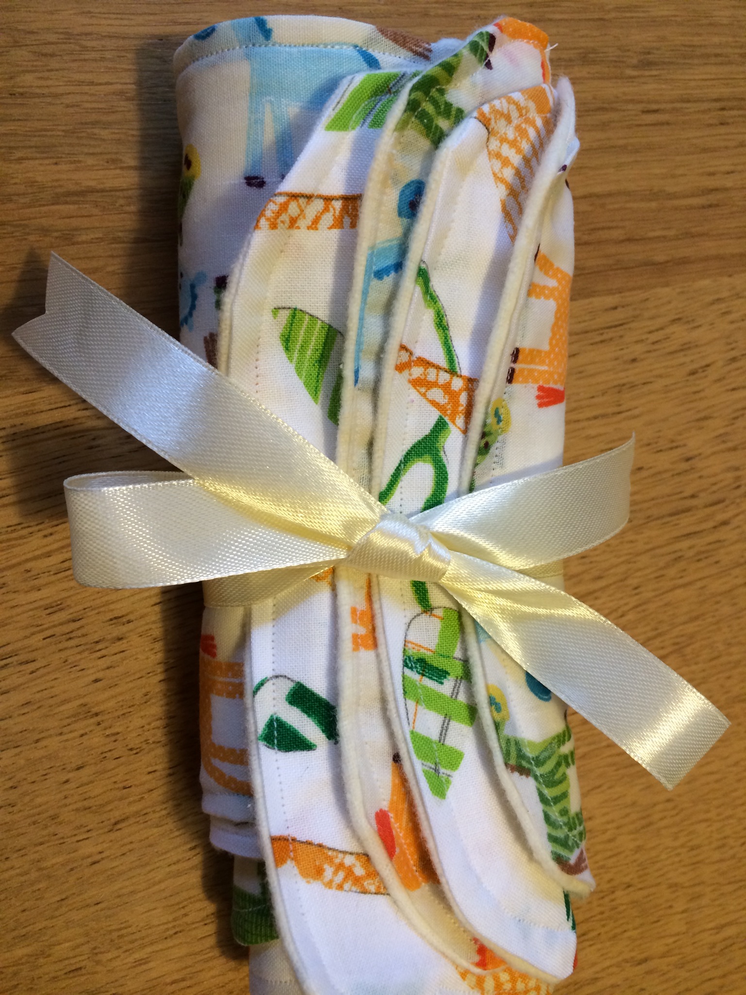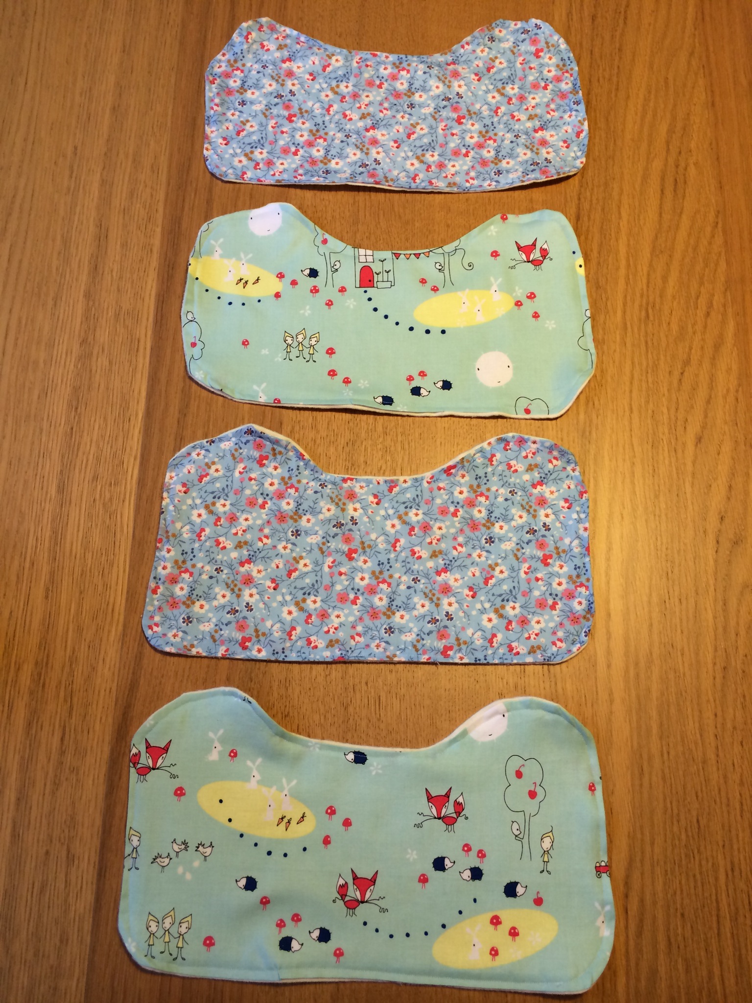 I then turned each burp cloth right way around and pressed it, starting with folding in the open bit. I really like how this did not need to be sewn shut, because the top sewing did the job. I then top sewed around the edge of each cloth and trimmed the loose threads. Then the first batch was completed!