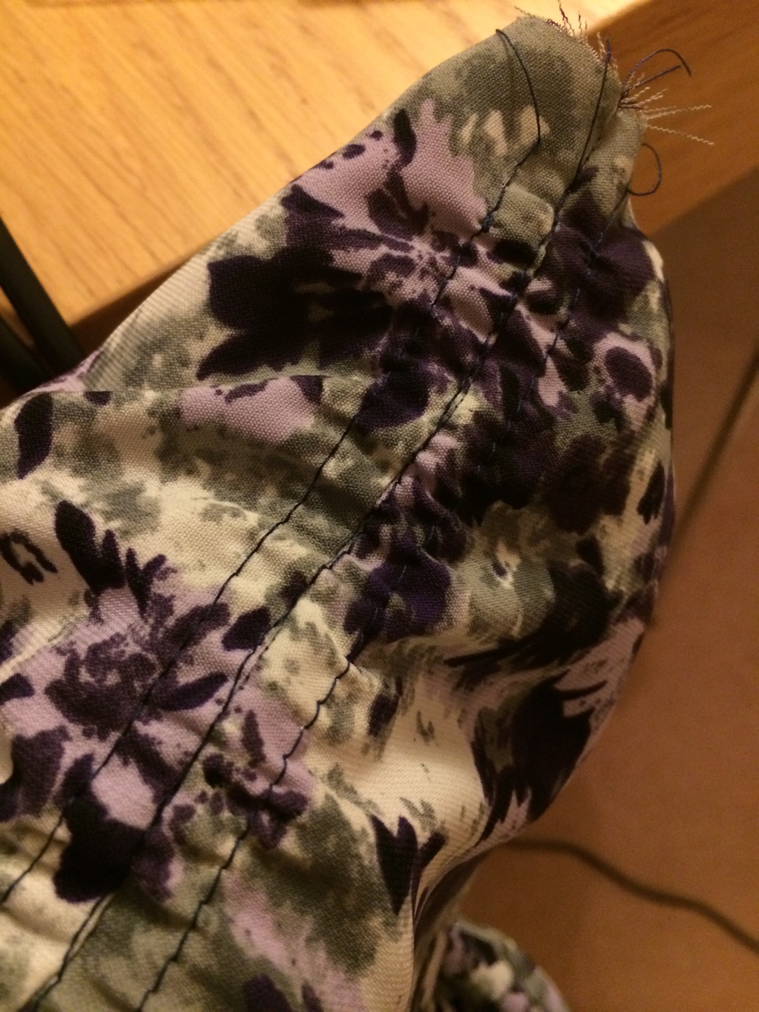 When the instructions said to unpick the initial long gathering instructions. I began to lose patience. It was so hard to distinguish between final stitches, basting stitches and gathering stitches. And I sewed one of my stays on upside down, although as this is hidden I refused to unpick it. This stage of the make just have taken me well over an hour, half taken up by sulking and half unpicking some of the stitches that I thought were surplus to requirement. I did not enjoy this and would consider putting in pleats as an alternative next time.
