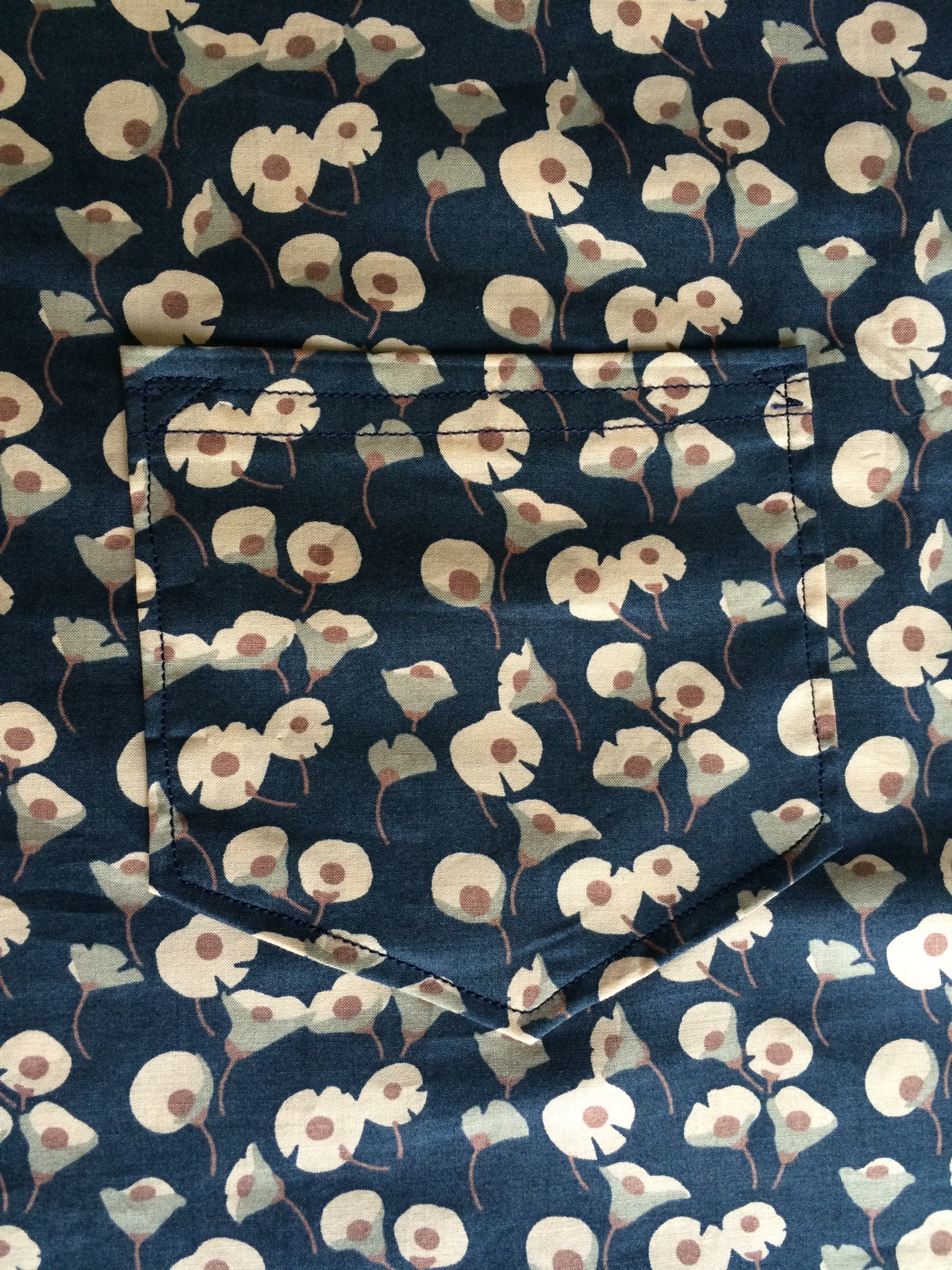 Strictly speaking I should have had 2.5 metres of fabric for the garment I chose (plain fronted dress with lower pockets and a belt) but I managed to adjust the pattern layout with the only compromise being that the belt piece did not follow the grain as it should have. Once the pattern was cut out I was able to use my fabric pen this time, and cutting out the pieces was quick and straightforward. Unusually, I had to do the hem first, and I chose the curved rather than straight option. Next, I’d opted to add two low pockets in the same fabric, which I really liked the process of making as well as the finished look. I think it could work nicely to also use a contrasting or plain fabric next time.