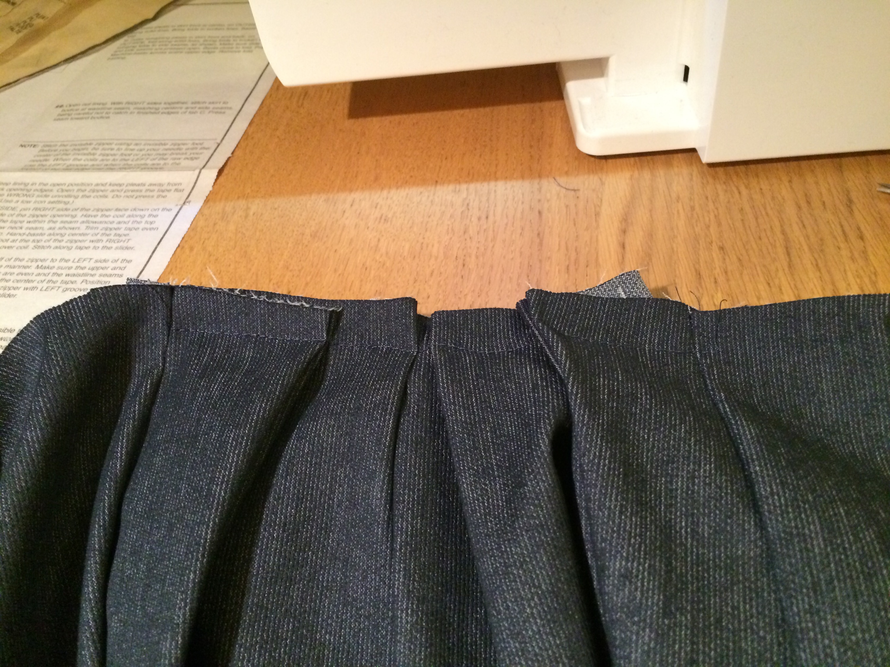 Next it was time to move on to the invisible zipper. Not my forte but it did in fact go quite well. Except once it was in and fastened up so I could assess its invisibility, I noticed how I hadn’t lined the waistline up before inserting the zip.