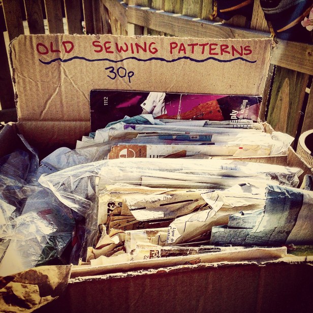 It was like a charity shop but larger, cheaper, and more jumbled. Almost immediately I saw the box of sewing patterns, marked 30p each!