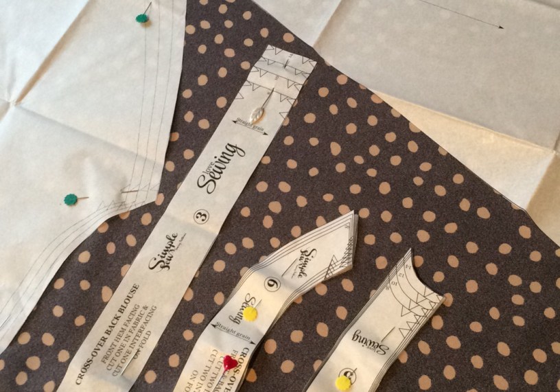 Turned out that the crossover back blouse wasn’t for knits, but as I have way more cotton prints in my stash I wasn’t too perturbed. I began to search, then remembered the piece of crepe type fabric I had left from making one of my Staple dresses. The fabric was a cheapie from The Textile Centre on eBay, but the dress I made with it is one of my favourite ever makes. I spread what was left on the table and *just* squeezed on all of the pattern pieces.