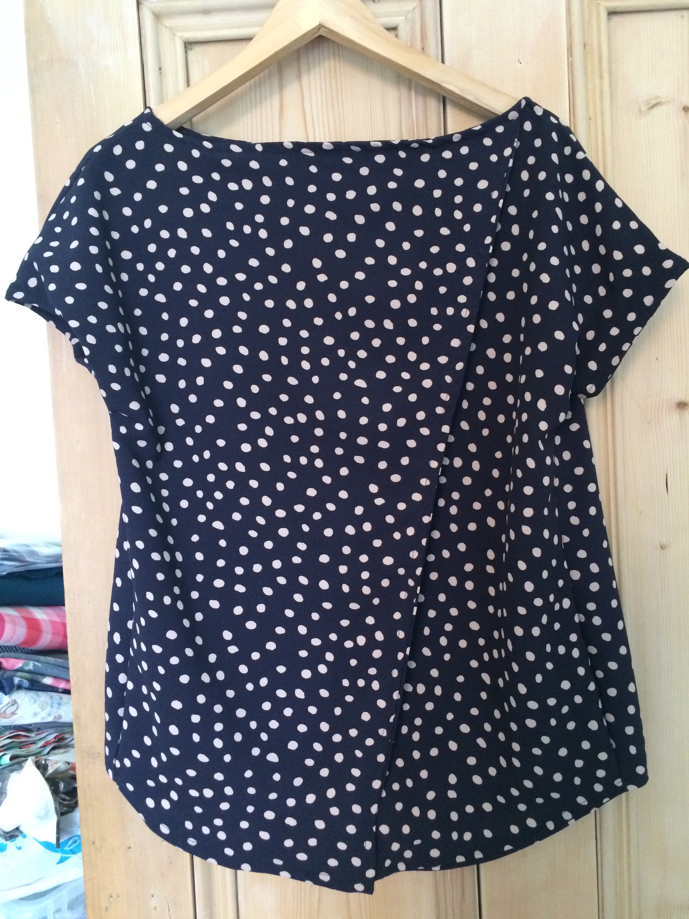 I think this top is a good wardrobe piece – something nicer than just a plain tee. Even better because it was a free pattern too 🙂 I do wonder why thy don’t think to include tacking the overlapping pieces in the instructions – I’m not sure anyone would wear it with it flapping forward all the time :-0