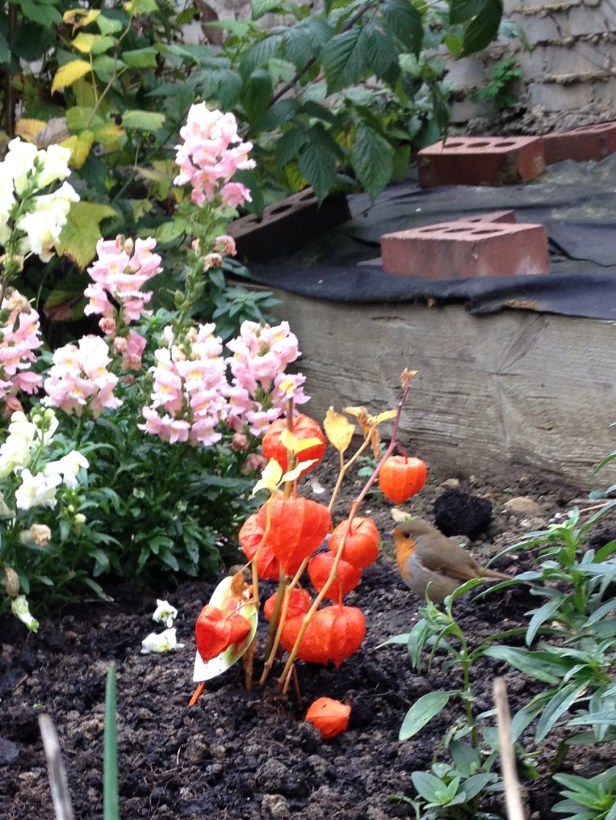 6. A borrowed photo! I bought 2 orange lantern plants from the garden centre where we had coffee and scones. My mum planted hers straight away and sent me this to show me the robin approved.