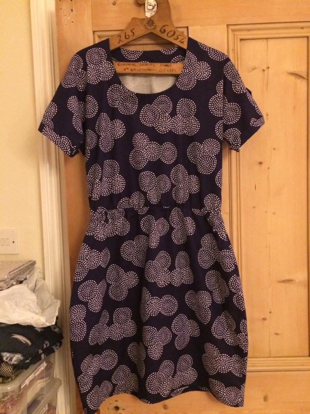 After trying on, I wished I had chosen a different fabric for my first attempt. The dress fit nicely on top but was tighter than I would usually wear from my waist downwards. Not totally unwearable, but not wearable very often, if you see what I mean.