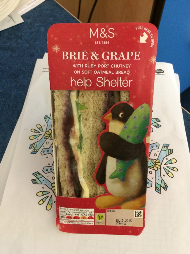 2. Making or taking anything to work for lunch simply hasn’t happened this week, and I was extra pleased to purchase this from M&S – probably the only Christmas sandwich I’ve come across that doesn’t contain turkey!