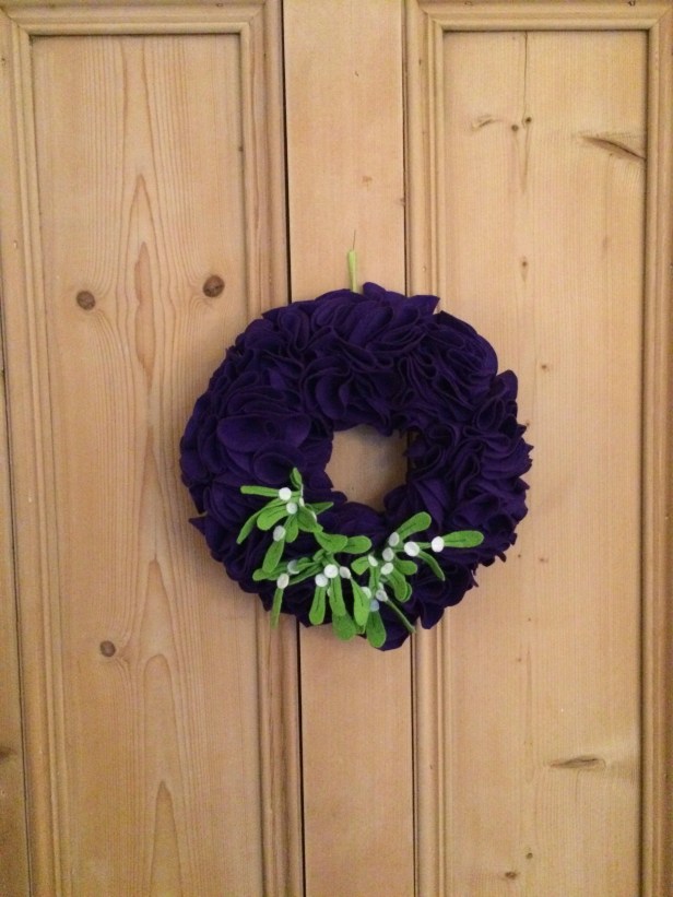 I think this garland will stay indoors, for this year at least. It was a very enjoyable, simple and satisfying project, and I’m hoping it lasts for a while. In total, the supplies cost me around £16, which I don’t think is excessive for something I had fun making and will keep. I wouldn’t have chosen purple as a Christmassy colour but I actually really like it with the green of the mistletoe.