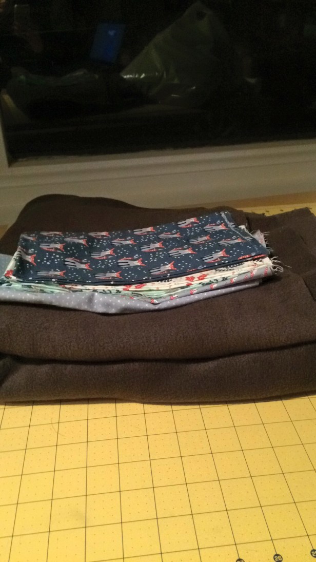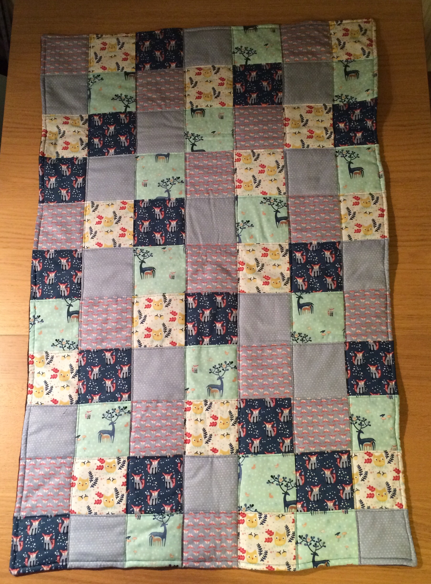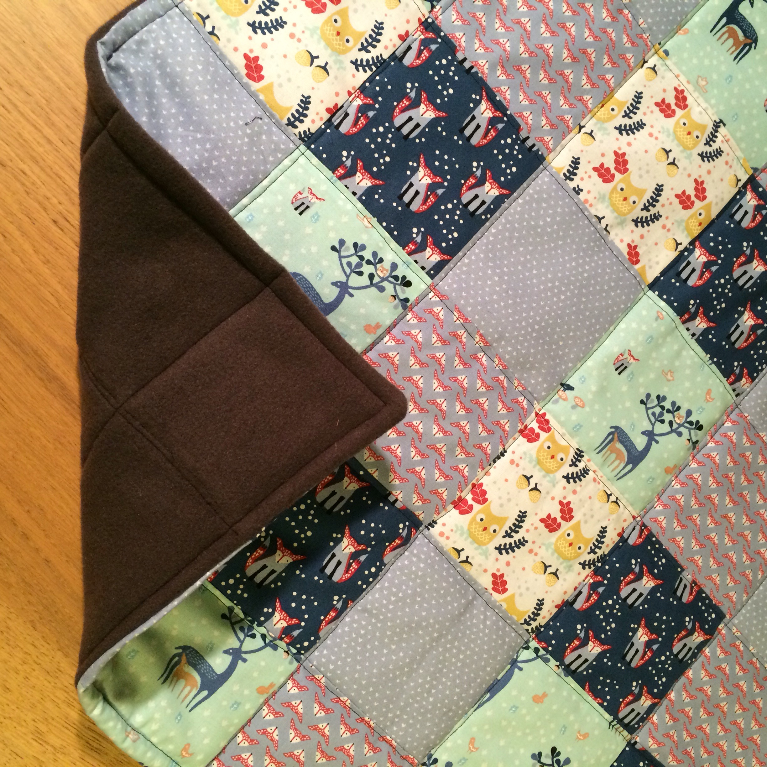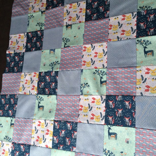 I had chosen to use this gorgeous Dear Stella collection from Elephant In My Handbag – keep reading for a fantastic special voucher code! I knew that mum-to-be Kelly loved fabrics featuring owls and animals, and the colour scheme seemed appropriate for a boy. On Saturday’s trip to Dewsbury, I picked up 1.5m of dark grey fleece to use as quilt backing. I’d bought a couple of metres of lightweight wadding a while ago, so the warm and fairly heavy fleece was perfect to add just the right amount of weight to the quilt.