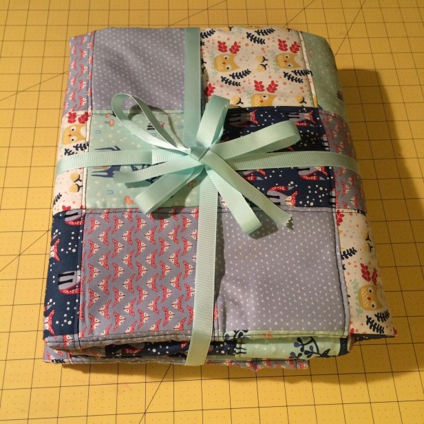 On the day I broke up from school for the Christmas holidays, I stayed up alone, very late, and made lists of everything I both needed and wanted to achieve over the fortnight off. I knew at the time it was far-fetched, but one of the makes I included on the list was a baby quilt for a lovely lady at work who was due to go on maternity leave in February. In an unusual moment of organisation, I had ordered the fabrics for the quilt topper back in November. More typically, however, I waited until the day before the baby shower to begin making the quilt.