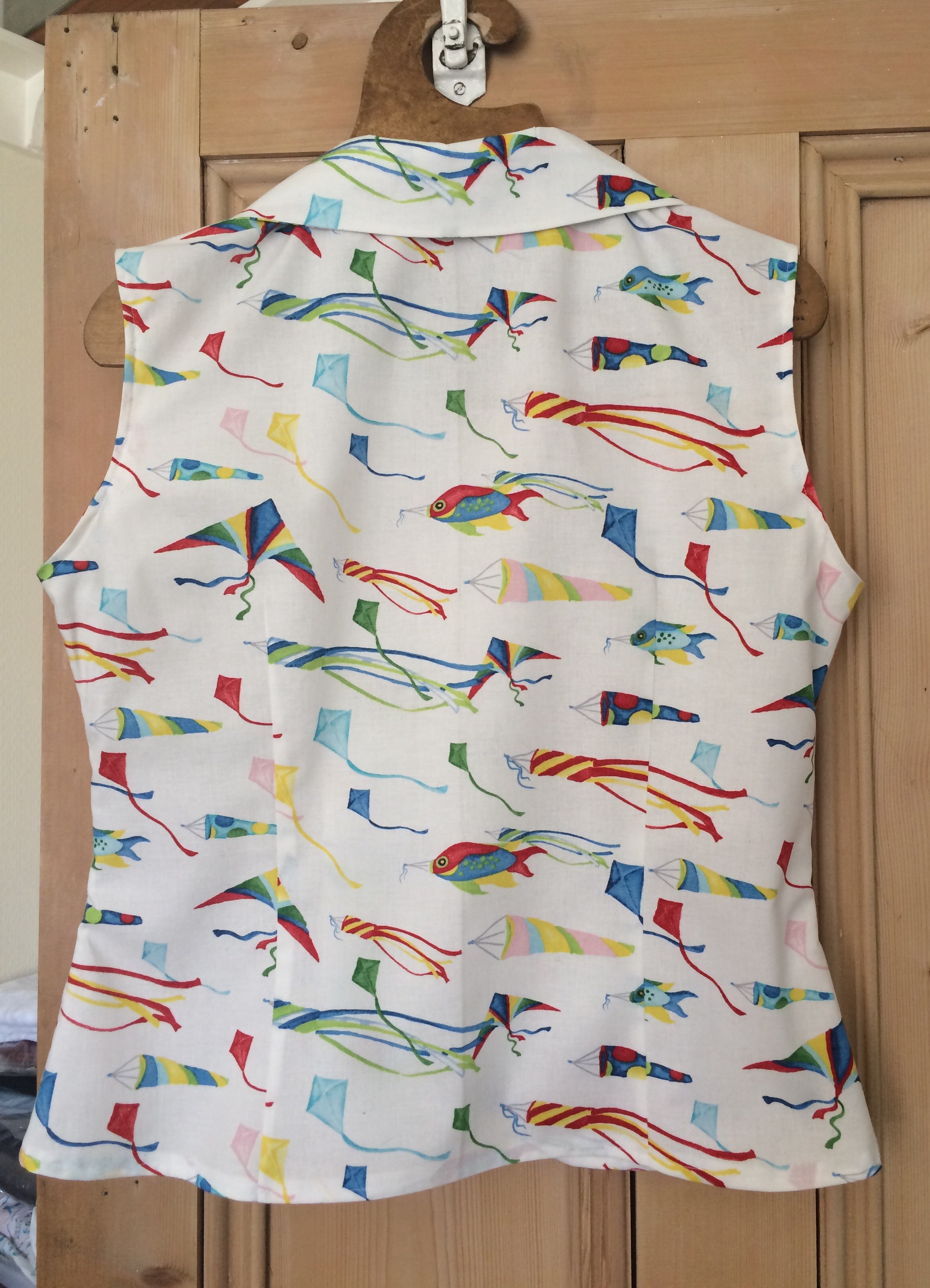 Last Sunday afternoon, when I’d done my work and walked the dogs. I found a pattern that would fit the 1.5m of colourful kite fabric I’d bought for £7.50 from a stall on Worksop market. The lady, Hazel, told me it was from America.
