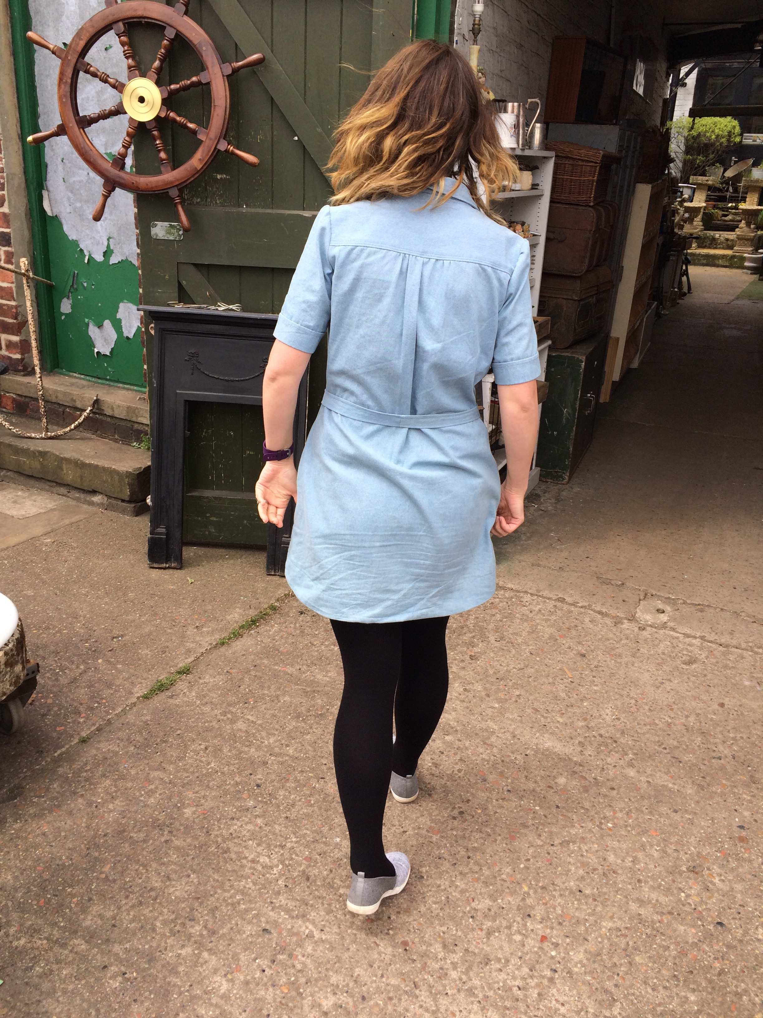 Shock, horror! No pre washing!! It’s the first thing I do when I get my fabric home, bung p it in the washing machine, mainly to make it smell nice that for shrinkage. It doesn’t look too short with your tight and I bet it’ll look good with boots and leggings in the winter too. I’ve had a shirt dress pattern traced off for ages and not gotten round to making it, then all these lovely versions like yours pop up. I need to get on with it 😀