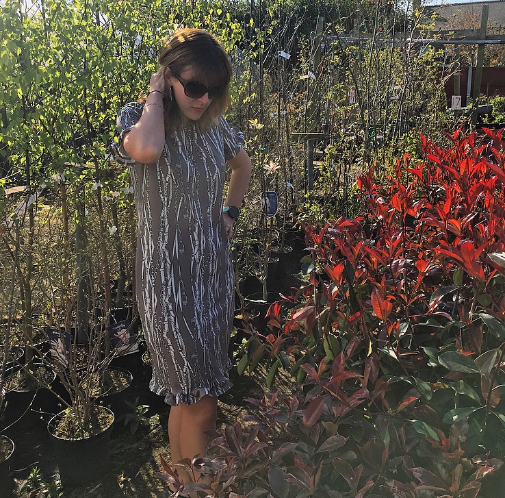 With 2 metres I knew I wanted to make a dress, and I had recently got my first two AK Patterns back from the copy shop. I decided to make a Sheona dress with the slim ruffle hem and sleeves. It’s a straightforward make, more so if your overlocker doesn’t decide to chew up the neckband half way around (WHY is it always the most noticeable place?) and I sewed the majority on my overlocker which some zigzag topstitching on my machine. The fabric behaved very well and if you didn’t want to hem it there’s no danger of fraying, but it turned up nicely for the hems and went through both machines no problem.